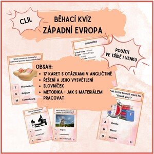 Běhací kvíz – západní Evropa (CLIL) Materiál je vytvořen pro žáky 2. stupně ZŠ a také nižšího stupně gymnázií. Otázky