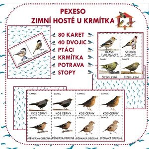 Pexeso Zimní hosté u krmítka je didaktická hra zaměřená na poznávání ptáků, které můžeme pozorovat zejména v zimním