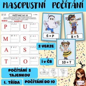 Cílem výukového materiálu je procvičit si sčítání a odčítání do 10 na téma masopust či karneval. Aktivovat žáky k