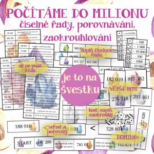 Materiál obsahuje 7 hlavních aktivit s vyvozením číselné řady do milionu. Najdete zde doplňování číselných řad, nácvik