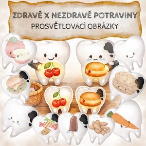 PROSVĚTLOVACÍ OBRÁZKY - ZDRAVÉ x NEZDRAVÉ POTRAVINY🍒🍬🍫🥦 Soubor obsahuje 19 stran včetně průvodního listu. Vzdělávací