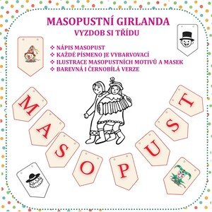 Tento materiál je připraven tak, aby vizuálně podpořil povědomí o masopustu a přiblížil dětem jeho tradice pomocí