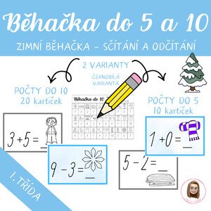 Tento soubor nabízí procvičování sčítání a odčítání do 5 a 10 v zábavné formě pohybové aktivity. Děti hledají kartičky