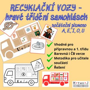 Materiál obsahuje sady obrázků tematicky rozdělených podle samohlásek: Každá stránka představuje obrázky začínající
