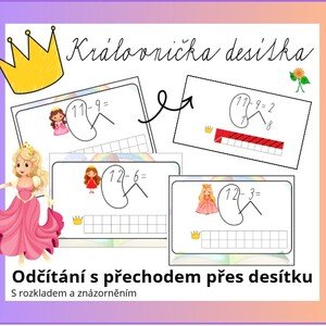 Karty jsou určené pro nácvik odčítání s přechodem přes desítku. Základem je hledání "královničky desítky" , která nám s