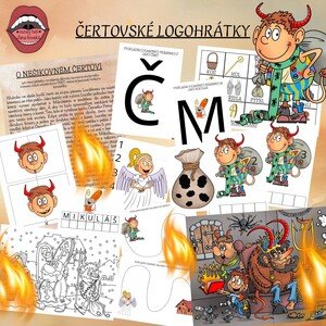 Soubor obsahuje pohádku O NEŠIKOVNÉM ČERTOVI se sluchovým cvičením, oromotorické skládačky s čertem, slabikování