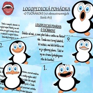 Soubor obsahuje 19 tučňáků, které vložíme do boxu s bílými kamínky, děti hledají obrázky a poté předvedou cvik, můžou