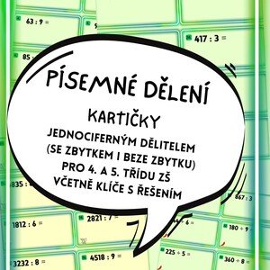Obsah materiálu: Sada příkladů: Kartičky s příklady na písemné dělení jednociferným dělitelem. Diferenciace: Příklady