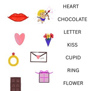 Valentýnská tematika v angličtině s procvičením základních předškolních dovedností. Materiál obsahuje: Slovíčka -