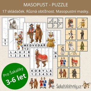 Puzzle Masopust od ŠakalíAktivity.cz jsou vzdělávací aktivitou vhodnou pro mateřské školy, 1. stupeň základních škol