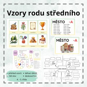 Popis: Materiál obsahuje 2 typy přehledů vzorů rodu středního (vyskloňovaný vzor nebo obrázky), 160 kartiček s