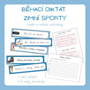 Běhací diktát obsahuje 2 sady, každá sada má 5 vět. Věty jsou zaměřené na procvičování tvrdých a měkkých souhlásek v