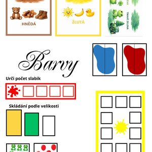 Materiál je zaměřen na barvy, ale najdete v něm i tvary. Soubor rozvíjí: rozvoj barevného vnímání předčtenářské
