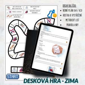 Jednoduchá a hravá desková hra, která děti zavede do světa zimních sportů. Děti hází kostkou, posouvají se po herním