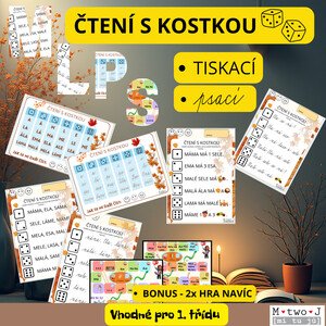 Didaktický materiál „Čtení písmen, slov (s kostkou)“ je určen pro začínající čtenáře, zejména žáky 1. ročníku ZŠ. Pomocí