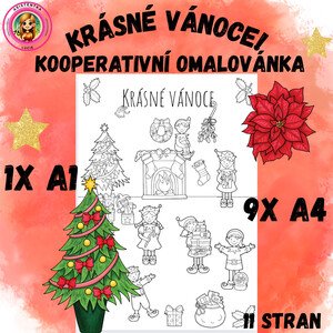 Kooperativní vánoční omalovánka je výtvarná aktivita zaměřená na spolupráci, komunikaci a společné tvoření. Děti pracují