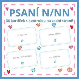 Tento soubor obsahuje 36 kartiček zaměřených na procvičení psaní n / nn ve slovech. Na přední straně najdete úkol a na
