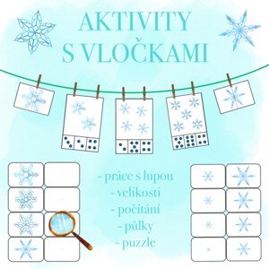 Tento soubor obsahuje aktivity s vločkami - práci s lupami, počítání, půlky obrázků, puzzle a seřazování podle velikosti