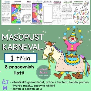 MATERIÁL obsahuje 8 PL s TEMATIKOU MASOPUSTU, KARNEVALU do ČJ a M pro 1. TŘÍDU ❄️ 1x ČTENÁŘSKÁ GRAMOTNOST 1x POZNÁVÁNÍ