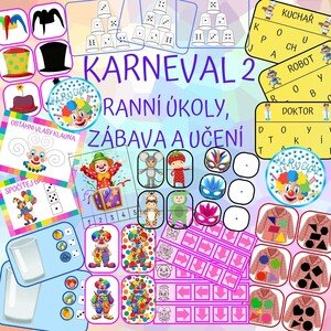 Soubor obsahuje: KARNEVALOVÁ GIRLANDA RANNÍ ÚKOLY GRAFOMOTORIKA S KLAUNEM DOMINO S KLAUNEM PŘIŘAZOVÁNÍ OBRÁZKŮ - POČTY