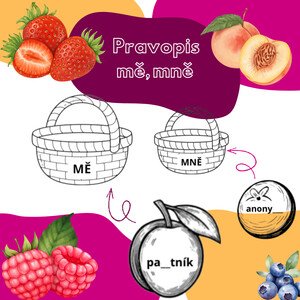 Materiál obsahuje: kartičky s ovocem (slova na doplnění) kartičky s košíky (mě, mně) řešení Materiál slouží k