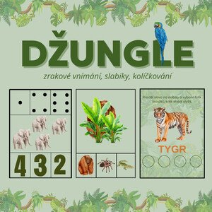 🌿🐒 Džungle - zrakové vnímání, slabiky, kolíčkování Materiál obsahuje: 🔹 14 demonstračních obrázků zvířat 🔹 4× (A5)