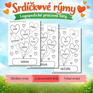 🧡 Srdíčkové rýmy - pracovní listy (PDF) Hravý vzdělávací materiál zaměřený na rozvoj rýmování a sluchového vnímání u