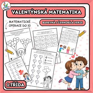 Soubor pracovních listů z matematiky na téma Valentýn pro žáky 1. třídy ZŠ, který slouží k procvičení základních