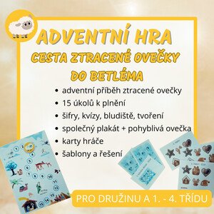 Adventní kalendář. Uvnitř najdete průvodní dopis, kolečka s čísly na označení třeba pytlíčků a 30 úkolů, mezi kterými si