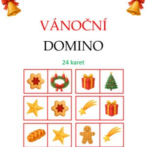 Soubor obsahuje 24 karet vhodných pro hru DOMINO s vánočními motivy. Stačí jej pouze vytisknout, zalaminovat a