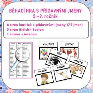 Jedná se o hru, kterou mají žáci rádi. Obsah materiálu: průvodní list 6 stran kartiček s přídavnými jmény 5 stran