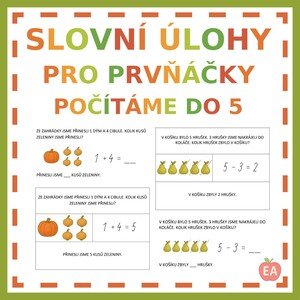 Pomůcka dětem pomáhá procvičit si slovní úlohy na sčítání a odčítání v oboru do 5. Děti skládají dohromady zadání slovní
