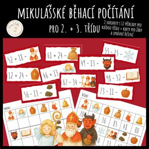 Mikulášské běhací počítání pro 2. + 3. třídu Výukový materiál je tematicky laděný do mikulášské atmosféry – děti se
