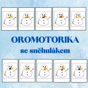 Co v materiálu najdete: 10 oromotorických karet (A4) se sněhulákem přehledné karty se zaměřením na pohyblivost jazyka