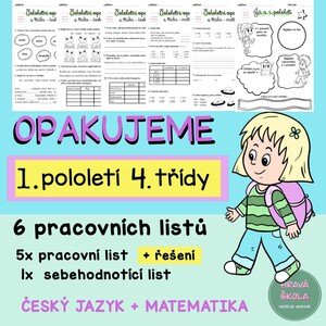 ✏️Materiál obsahuje 5 pracovních listů k zopakování učiva 1. pololetí českého jazyka a matematiky 4. třídy. ✏️Součástí