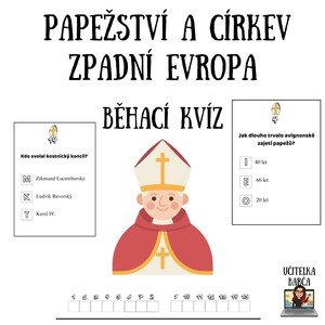 Materiál obsahuje 15 kvízových karet na zopakování učiva o papežském schizma. Součástí je i záznamový arch. Materiál je