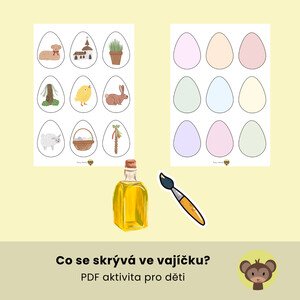 Jak na to: Stránku s vajíčky přiložíme na stránku s velikonočními symboly. Děti vajíčka přetírají olejem a postupně se