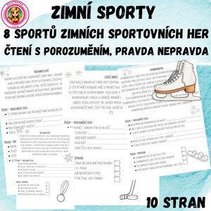 Materiál je zaměřen na práci s textem s tematikou zimních sportů. Žáci se postupně seznamují s jednotlivými sporty, mezi