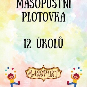 Masopustní plotovka s 12 úkoly pro děti od 3 do 7 let. Lze vytisknout také jako brožuru.