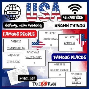 Nechte žáky charakterizovat 48 nejznámějších lidí, míst a věcí z USA. Žáci buď pomocí svých vědomostí nebo mohou