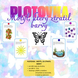 PLOTOVKA - MOTÝL, KTERÝ ZTRATIL BARVY Co vše obsahuje: ✅ 10 kartiček s úkoly ✅ příběh ✅ omalovánku motýla Jak ji využít