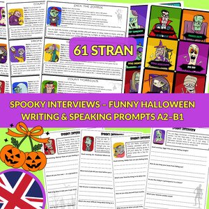 Vstupte do světa Halloweenu s originálním materiálem Spooky Interviews – Funny Halloween Writing & Speaking (A2–B1)