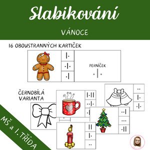 16 kartiček v barevné i černobílé variantě + 16 kontrolních kartiček. Děti vytleskávají slabiky, rozlišují jejich délku
