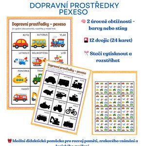 rozvoj paměti a pozornosti zrakové rozlišování tvarů 12 dvojic (24 karet) 2 varianty hry – barvy / stíny připraveno k