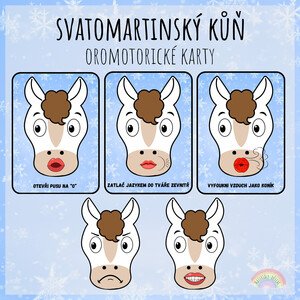 Soubor obsahuje 10 oromotorických karet na téma Svatomartinský kůň. Každá kartička znázorňuje a popisuje jednoduchý cvik