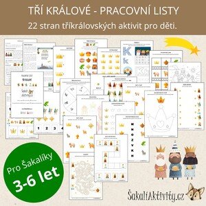 Pracovní listy s tematikou a motivem Tří králů, korun a královských darů. Listy začínají úvodem, kde Šakalíky