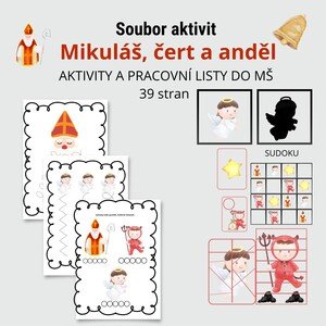 Tento mikulášský materiál obsahuje čtyři strany s kartičkami domina (1 strana = 1 sada kartiček domina = 10 kartiček) a