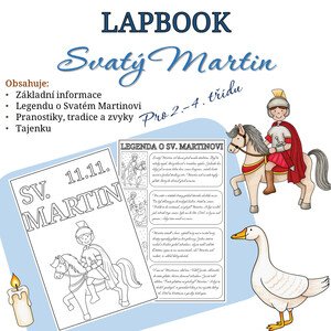 Tento tematický lapbook je výuková pomůcka určená k seznámení se svátkem Svatý Martin. Žáci si hravou formou rozšíří