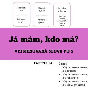 Procvičování: • Vyjmenovaná slova po S • Pro 3.–4. ročník METODIKA: 1. Každý žák dostane jednu kartu. 2. Žák s první