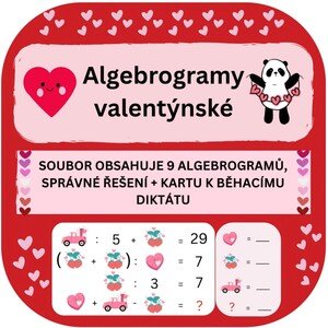 Valentýnské algebrogramy pro chytré hlavičky! Materiál lze využít jako pracovní listy či běhací diktát. V souboru
